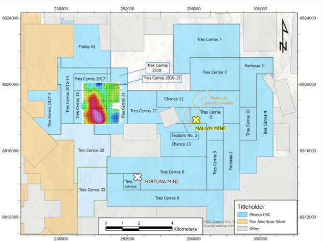 Acquisition increases Tres Cerros concessions by ~52% to 3,310 hectares and extends Tres Cerros corridor ~5 kilometres to the south
