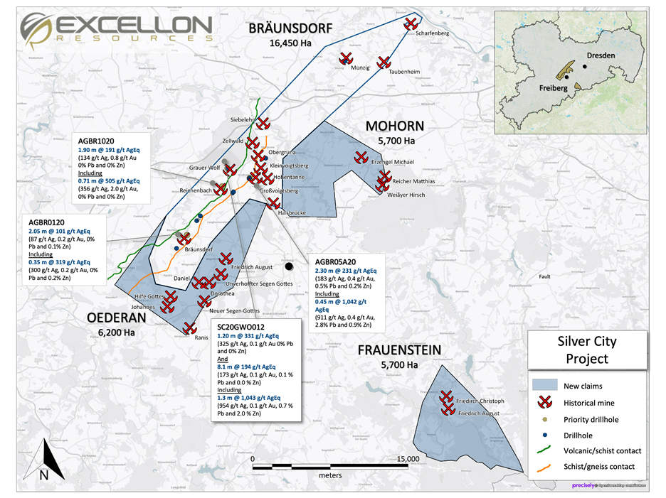 The Frauenstein, Mohorn and Oederan exploration licenses were granted to the Company following applications to the Sächsisches Oberbergamt (Saxon Mining Authority). Excellon also holds an option to acquire a 100% interest in the Bräunsdorf license on the Silver City Project from Globex Mining Enterprises Inc. (TSX: GMX) (OTCQX: GLBXF) and (FRA: G1MN).