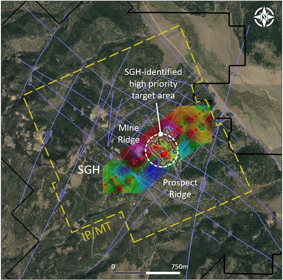 In addition to diamond drilling, the Company completed a 75-line-kilometre IP and MT survey across high-priority targets along the Kilgore deposit. The survey aims to better define structural features associated with, and the extent of, mineralization and to further define drill targets.