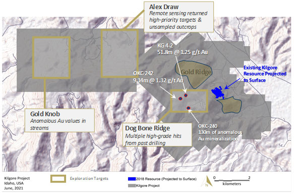 Figure 2: Multiple High Priority Exploration Targets at the Kilgore Property