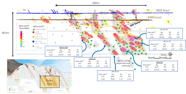 Objectives: The Company believes mineralization can be defined for up to the first two years of production from the planned drill program. In addition to drill bay locations at the 4090 level of the mine, dewatering of the 400 ramp (underway, see Figure 3) will provide additional platforms in closer proximity to the Isguiz vein system to accelerate the drill program.