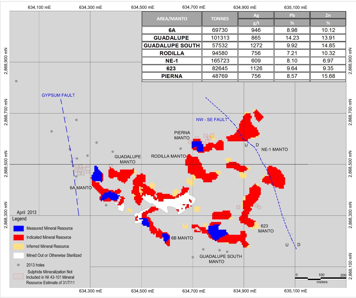 The Company's exploration program at La Platosa contemplates 58,000 metres of lower-cost drilling during 2013, primarily focused on expanding existing high-grade mantos resources. Exploration will continue for Source style mineralization on selective targets developed by the above-mentioned study.